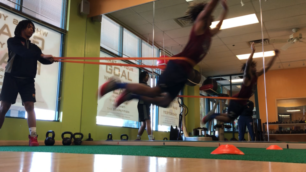 This exercise is great for developing overall power through the whole body, as well as, allow for isolated mechanics tweaking. The band is a great way to focus on your stride length. It forces you to sprint just as hard but not allowing you to generate the same amount of speed. Have someone tape your attempt (preferably a speed coach and in slow motion) and get a separate partner to hold the band. After each attempt, assess the encompassing technique. Whenever you complete resistance sprints, make sure to knock out some regular sprints, to reinforce the movement and increase your confidence to apply it to the game.